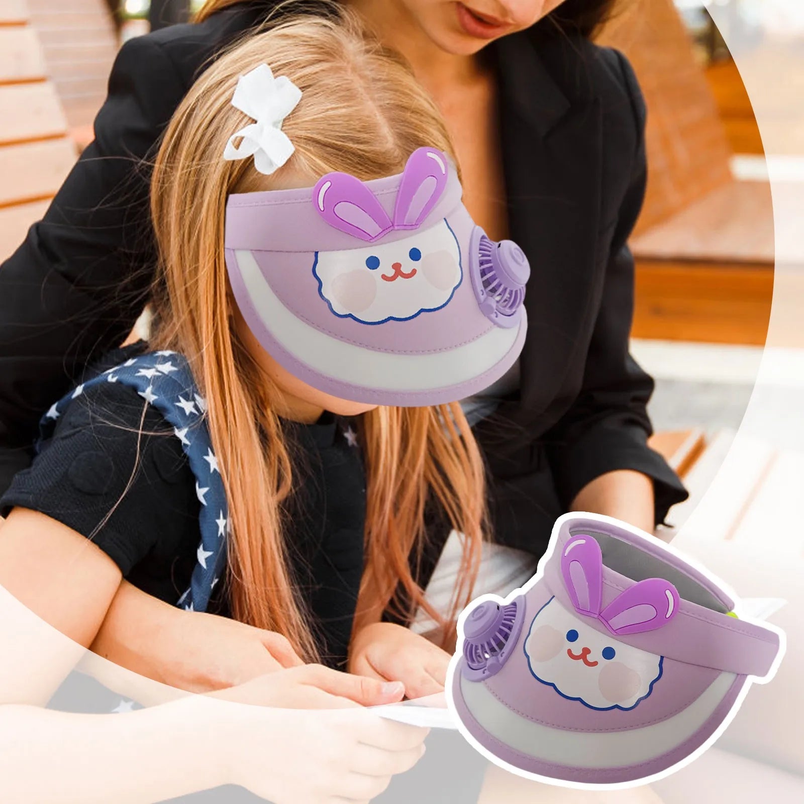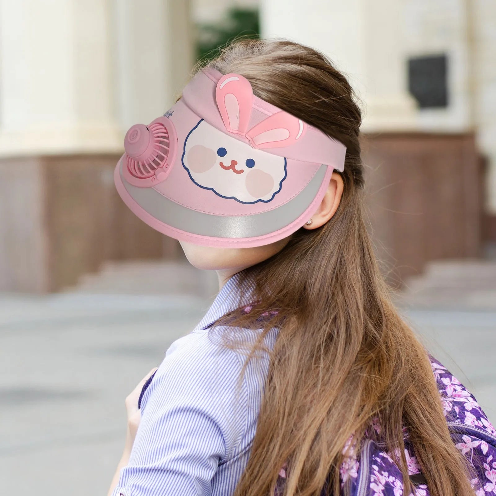 Animal Print Wide Brim Kids Sun protection Fan Hat Charging USB